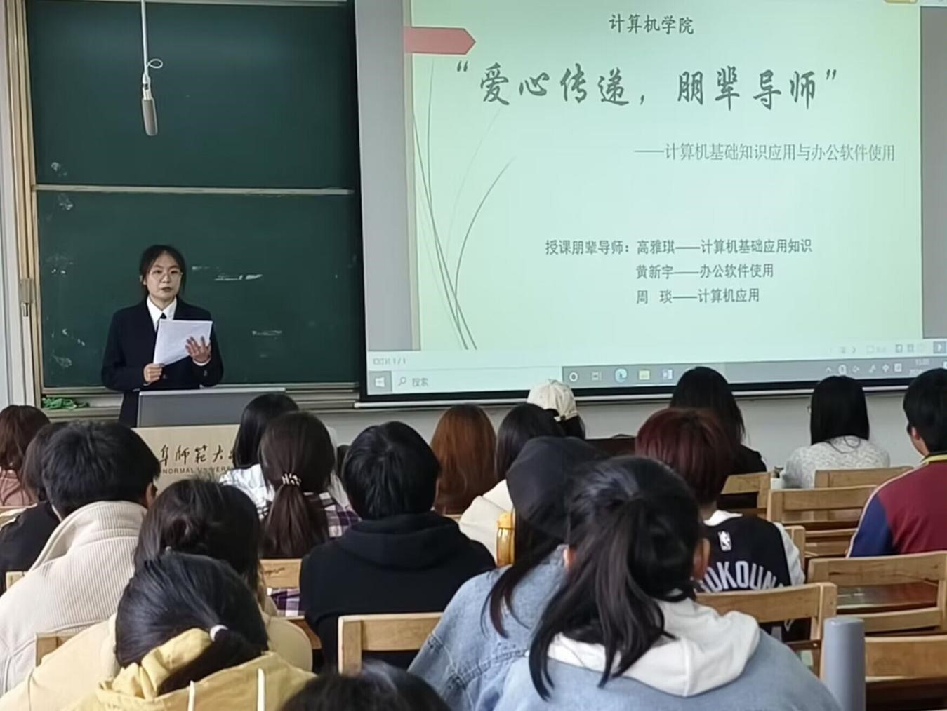 活动进行时,朋辈导师们各展风采。黄新宇详细演示了办公软件的操作,通过突出重点和快问快答的方式,让同学们在激烈的抢答中加深印象、拓展知识,有效提升了他们日后的工作效率。周琰向同学们介绍了互联网、数据库等计算机应用领域的相关知识,同学们积极回应,课堂氛围活跃,展现出了极高的学习热情。高雅琪则讲解了计算机发展史以及硬件基础,进一步加深了同学们对计算机的整体认识。
