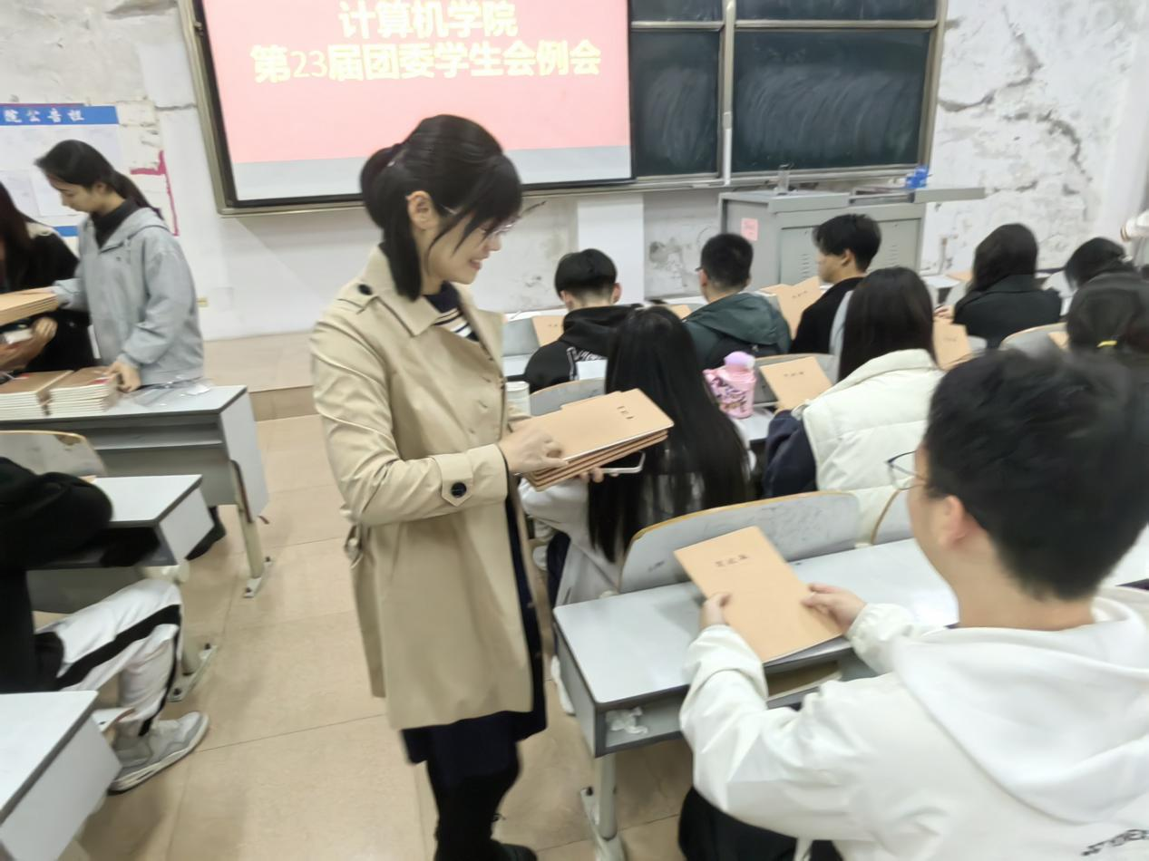 最后,于运清老师就近期即将举办的23级成人礼活动和新生运动会,强调各部门要尽快梳理部门工作,为今后学院的相关活动打好基础。于运清老师给参会成员下发会议记录本,希望同学们做好日常会议的记录工作,推动学院学生工作成果更上新的高度。