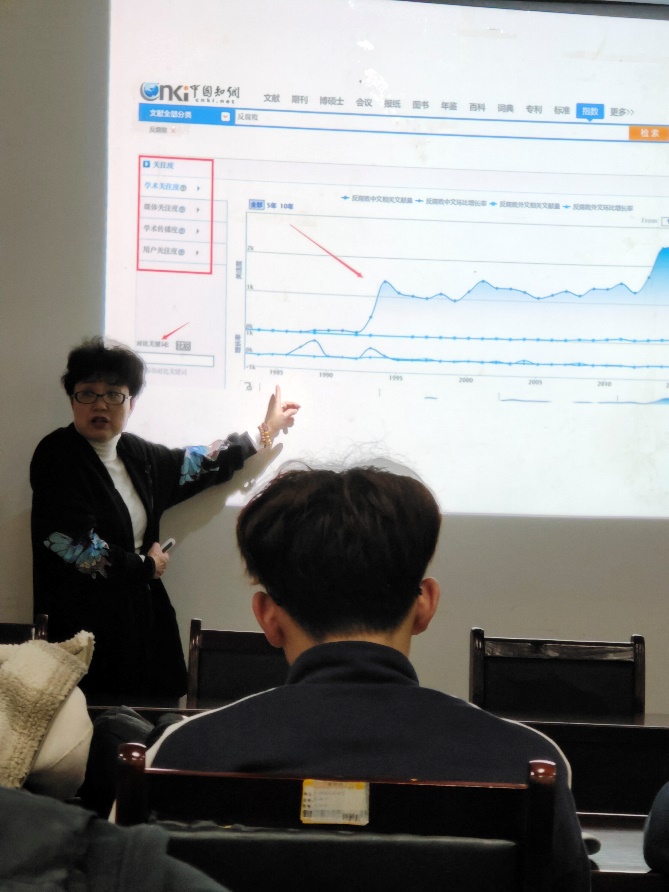 首先,仉老师对中国知网、读秀学术搜索系统界面做了简介,使同学们更加了解它们的用处;其次,仉老师从选题定题、文献分析、撰写帮助三方面解说了中国知网助力科研功能,从图书搜索、全文搜索、多面搜索解说了读秀的使用方法;最后,仉老师细心地对此次讲座做了总结,希望同学们能从此获得收获。