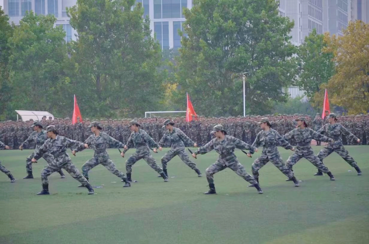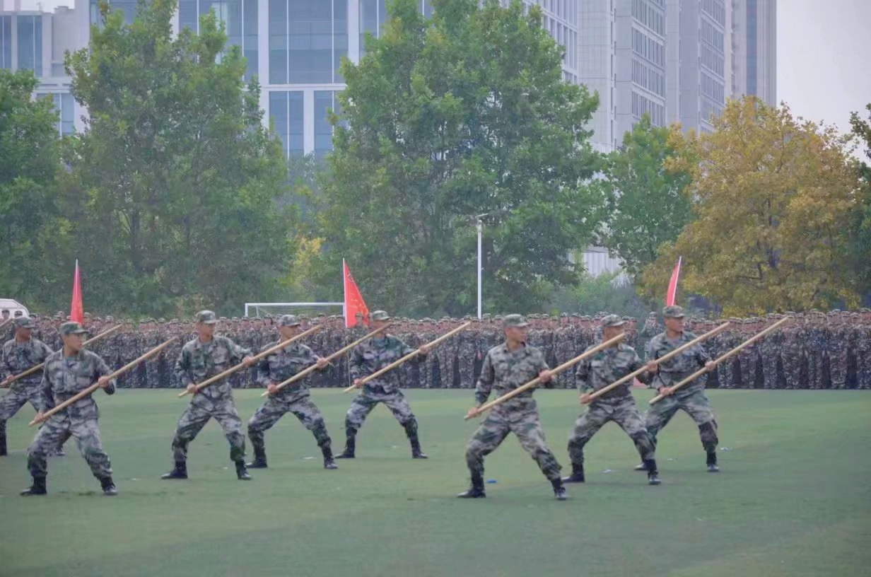 大会进行了庄重的升旗仪式,在雄壮、激昂的国歌声中,鲜艳的五星红旗冉冉升起、迎风飘扬,全体师生肃立注目,心潮澎湃,激动万分。伴着激昂铿锵的旋律,军训汇报表演正式开始,棍术、匕首操英姿飒爽、擒敌拳灵活铿锵,战术攻防设计场景逼真、节奏激动人心,现场高潮迭起,掌声雷动。由2022级各学院组成的分列式方阵依次从主席台前走过接受校领导和学院领导的检阅。“向前看!一!二!”新生们朝气蓬勃、精神昂扬,他们列阵整齐、步伐坚定、步履铿锵,呼喊的口号铿锵响亮,气势如虹,充分展现了广大学子们昂扬奋发、意气风发的精神风貌和青春风采。一身戎装展风采,英姿飒爽致青春!