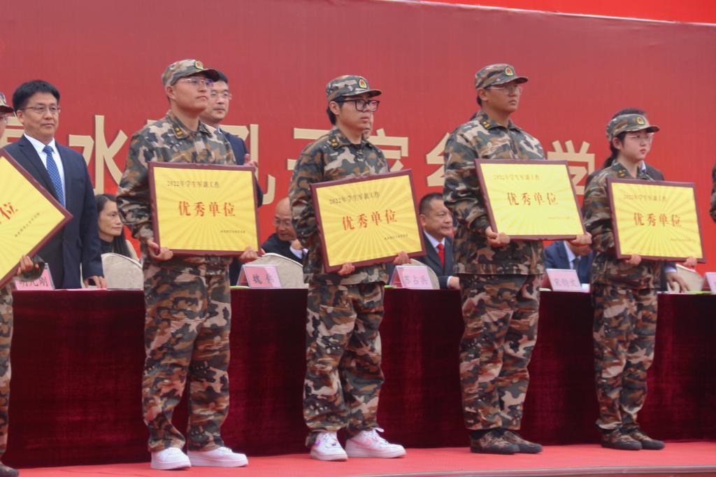 日照校区2022级学生军训总结表彰大会在学校西操场举行。