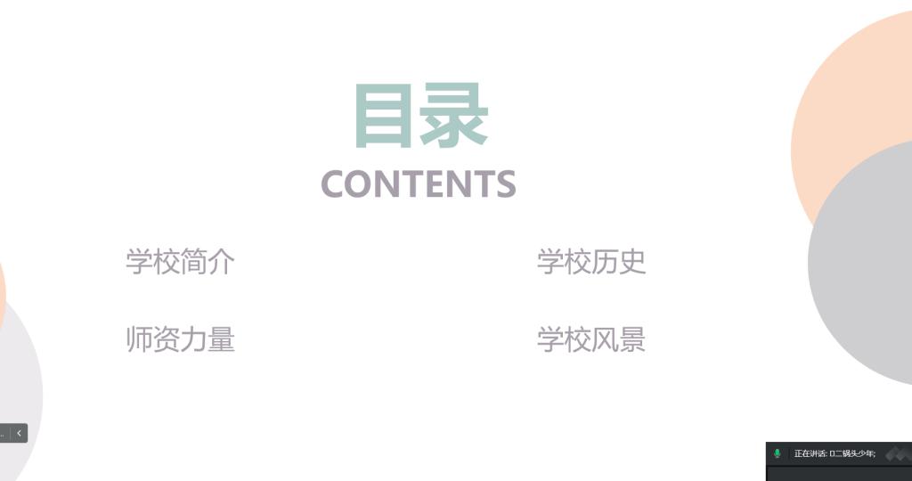 候方正同学围绕学校简介、学校历史、师资力量、学校风景四个方面为新生详细介绍了樱花动漫