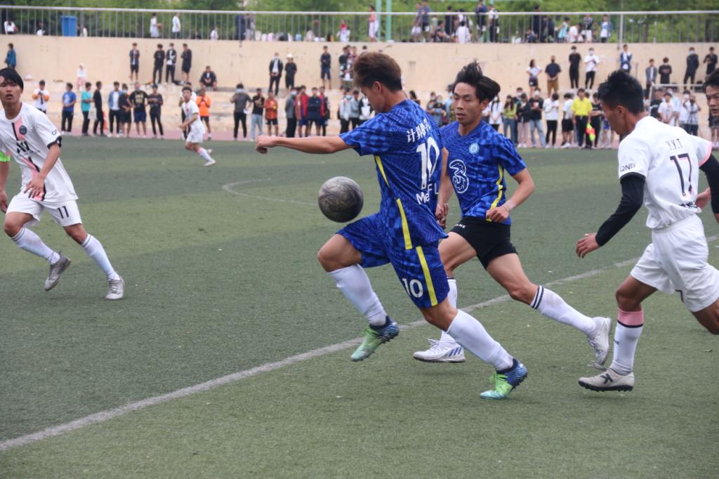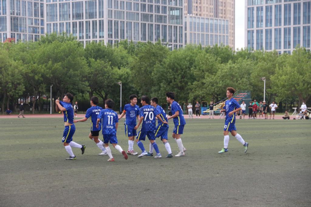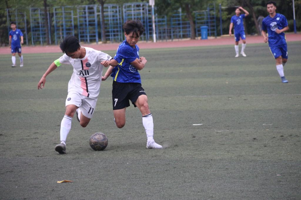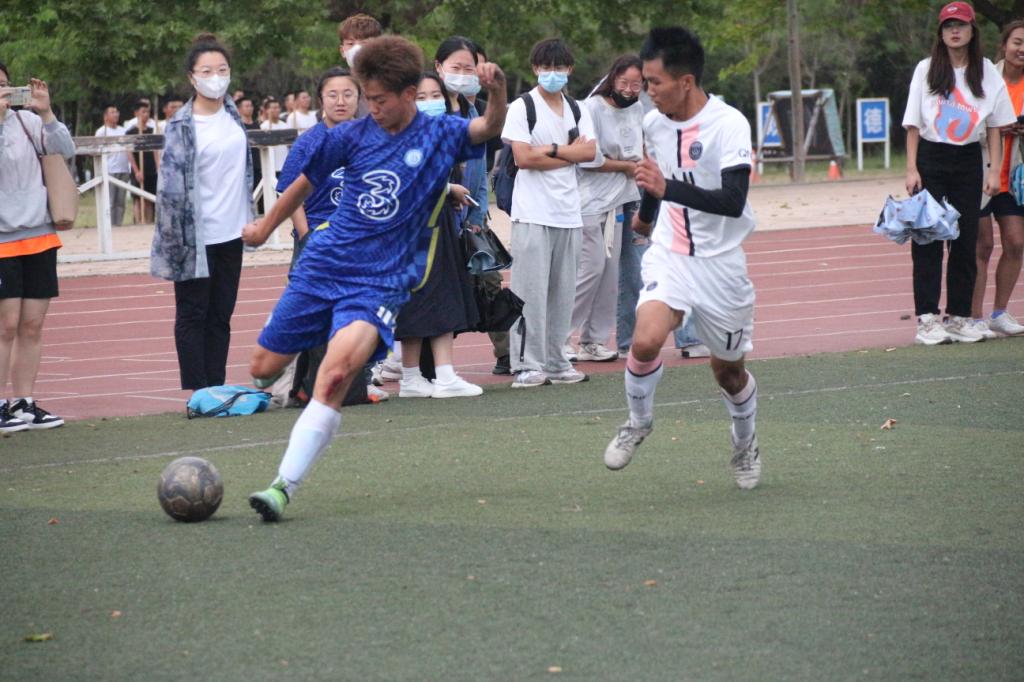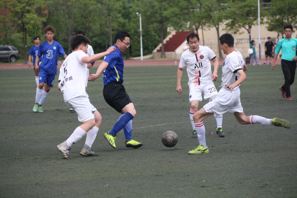 下半场比赛继续,队员们继续以饱满的精神投入比赛,赛况激烈胶着。在我院学子的积极呐喊助威中,比赛顺利结束,最终我院男足以1:0取得胜利。
