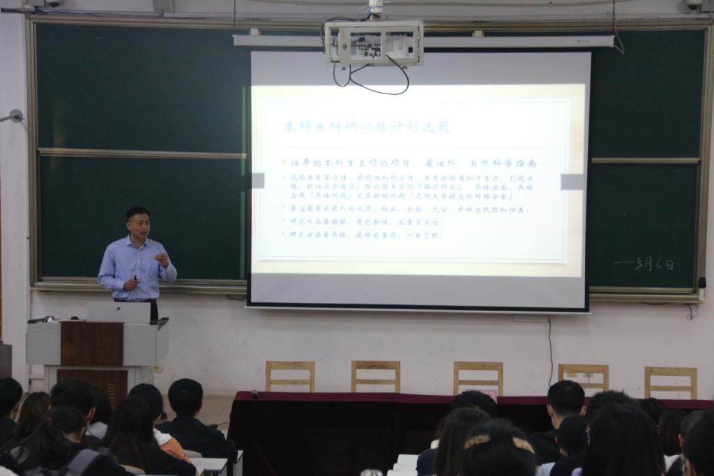 孙旭春书记就菁英班科创及社会实践活动为同学们作《如何进行本科生科研创新工作》报告,系统性地阐述了本科生阶段科研创新的工作。他着重讲解了如何选题、如何填写本科生申报书等,对同学们开展科研创新工作具有一定的指导作用。