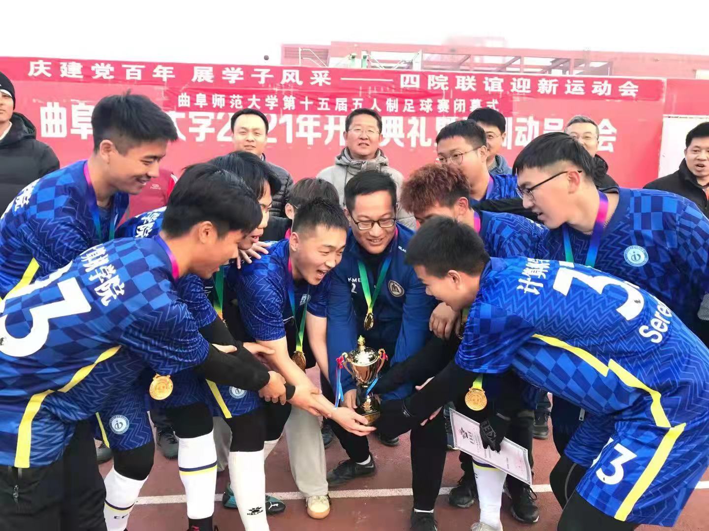 最终我院收获了男子组冠军(为中华民族伟大复兴而奋斗队),男子组殿军(台湾永远属于中国队),女子组亚军(绝队)的好成绩。其中,马俊潇荣获最佳门将称号,孟繁龙荣获最佳射手称号,丁少奇荣获最佳裁判称号,徐成宇(女足)荣获最佳新秀称号。