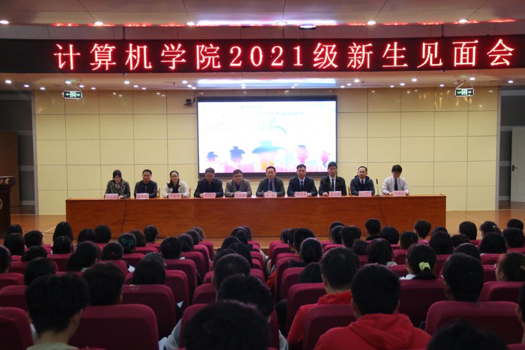 2021级新生见面会在图书馆报告厅正式召开。学院党委书记于健、院长李光顺、党委副书记孙旭春、副院长刘效武、人工智能系主任雷玉霞、网络工程系副主任马春梅、数据科学与大数据系主任董兆安、计算机科学与技术系主任张元科、优秀教师代表齐连永及各年级辅导员出席,樱花动漫