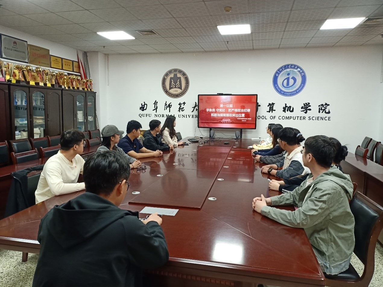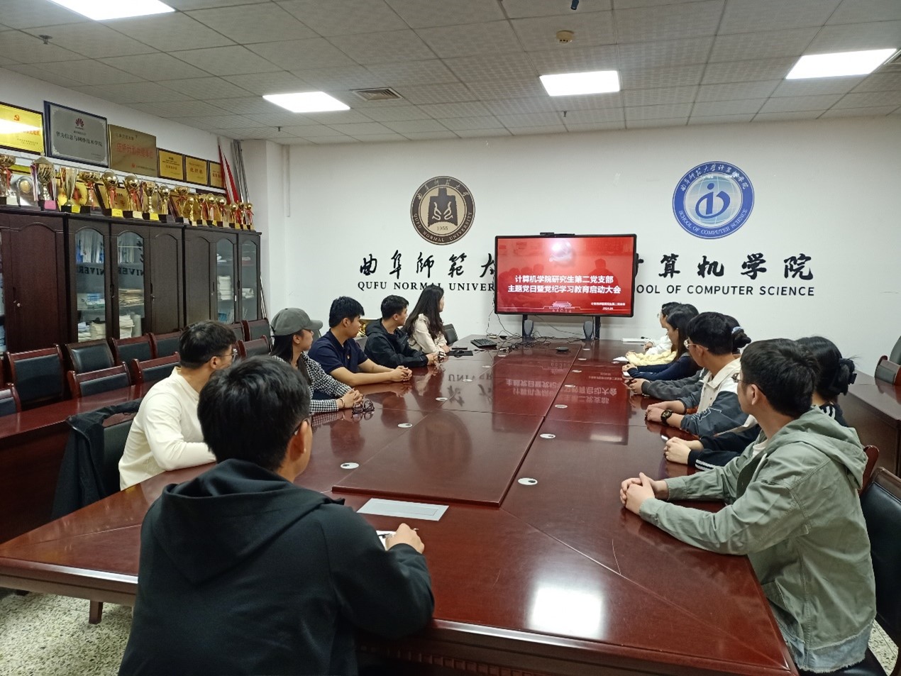 研究生第二党支部于JC1011会议室开展主题党日活动暨党纪学习教育启动大会,研究生第二党支部党员参加本次活动。活动由党支部书记葛道辉老师主持。