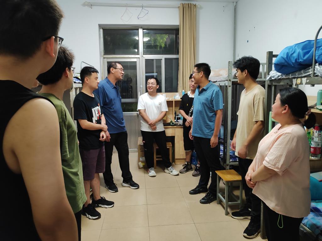 副院长刘效武教授、副院长尚军亮教授、研究生辅导员程荣花老师及研究生会主要学生干部深入新生宿舍,了解学生住宿情况并代表学院对他们的到来表示欢迎。老师们对新生提出的问题进行了耐心细致的回答,并对他们提出了期望,希望他们尽快融入新环境、适应新生活,有困难和问题要及时向辅导员老师反映,以乐观积极的态度面对即将到来研究生学习和生活。