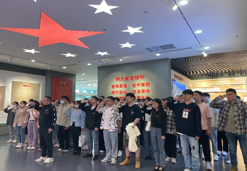 研究生党支部书记袁玉卓领誓,全体党员在鲜红的党旗下郑重宣誓,重温入党誓词,忆入党初心,更加坚定始终忠诚于党、勇于担当作为的信心决心。