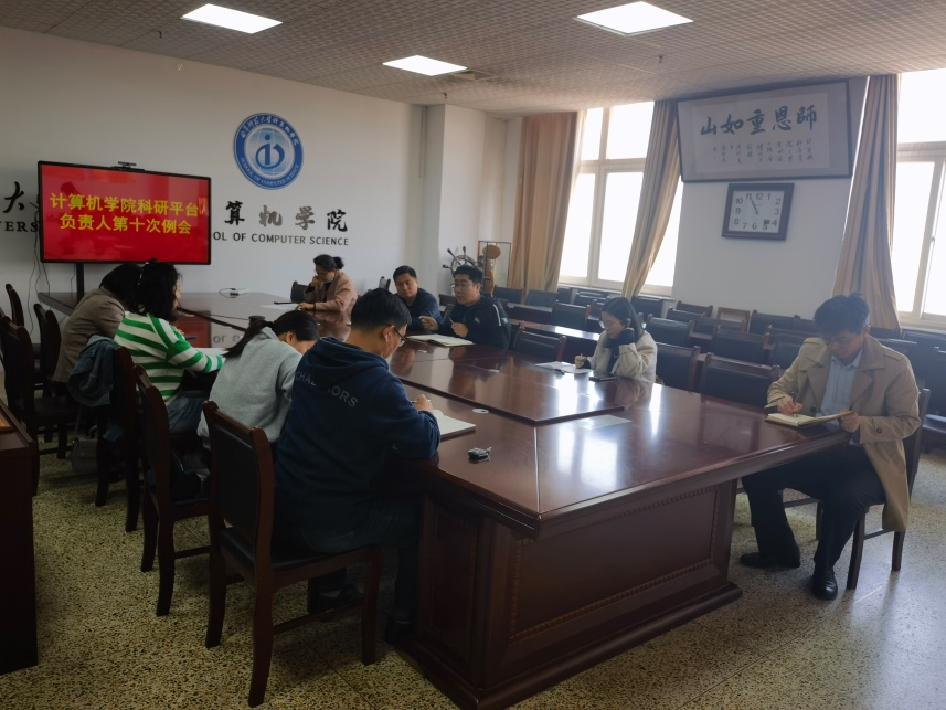 于JC1011会议室举行科研平台负责人第十次例会,各科研平台负责人参加。