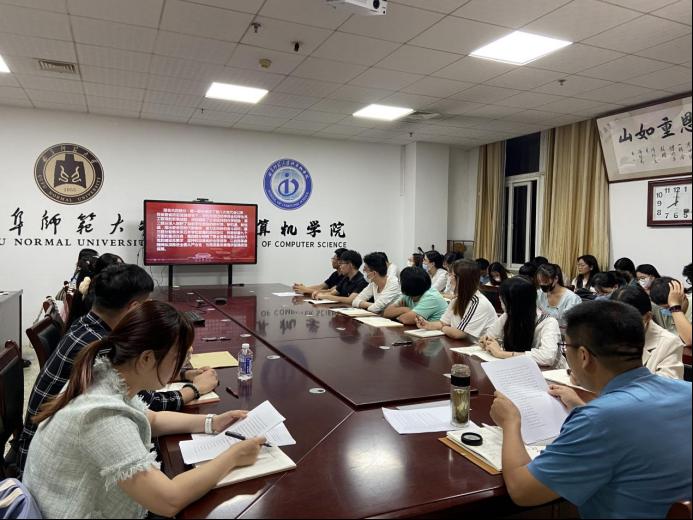 2022年9月30日,计算机学院研究生党支部于JC1011会议室开展“学习党代会精神,喜迎二十大召开”主题党日活动。党支部书记尚军亮老师、辅导员程荣花老师以及研究生党员参加本次活动。活动由党支部书记尚军亮老师主持并发表讲话。
