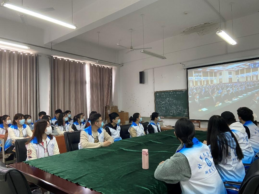 研究生党支部准时组织党员在JS410会议室集中观看,会议由支部副书记汪美荃主持。
