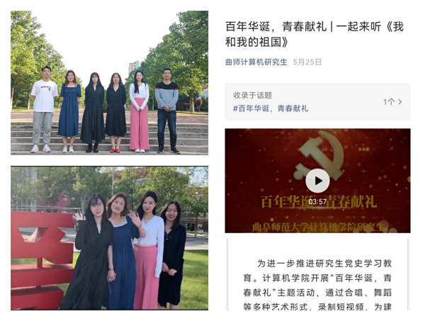 研究生党支部将持续开展青春献礼活动。“百年辉煌,青春向党”,研究生学子以自己的方式追忆中国共产党一百年的光辉历程,表达新时代青年学子不忘党和人民的重托,牢记初心使命,建设伟大祖国的决心。合唱、舞蹈、诗朗诵、乐器……正值青春的研究生学子为中国共产党成立百年献上了最深沉的敬意。