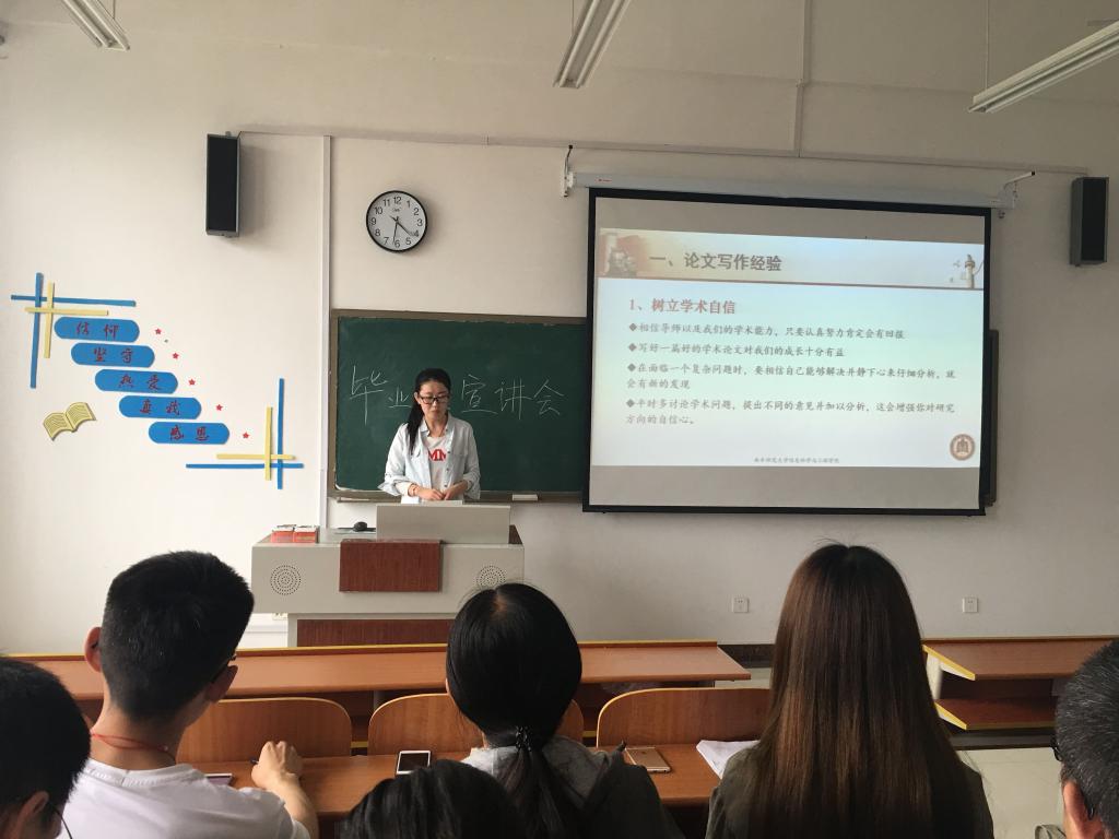 首先孙晓敏同志从论文写作经验、工作应聘经验、以及考博建议三方面与大家进行交流,在第一方面论文写作经验方面,她主要提到以下三点:1、树立学术自信。2、先看再写,多看再写。3、论文写作过程:1)阅读大量樱花动漫相关的文章是基础;2)针对阅读过程中遇到的问题找到新的突破点(比如算法的设计以及性能的分析),寻找相关的资料看是否可以优化原来的算法;3)大体设计算法模拟解决过程,然后再从理论上丰富设计的算法,通过仿真检验是否提高算法性能;4)整理相关内容(理论+实验结果),撰写文章;5)进行中文论文到英文的翻译以及语法等表述。在第二方面,工作应聘经验方面,她主要结合自身实际经历,给大家提出意见建议。在第三方面中,她提到我们可以应用SWOT分析法确定自己能够攻克的目标,SWOT分析是战略管理的一种最常用的分析方法。最后她预祝师弟师妹们写出高质量的论文,将来找到满意的工作,收获满满。随后,耿海亭同志进行宣讲。他首先强调毕业期间乃至我们当下的第一步也是最重要的一步,是进行自我定位。包括兴趣、能力、城市以及其他外界条件。给自己清晰的定位,有合理的计划。在做好学术的同时,做好职业规划。更重要的是要有执行力,将一件件计划上的事情变成现实。随后他着重讲了自身的考博经验,他主要提到以下几个方面:博士待遇、前景 ,如何确定博导 ,导师看重什么,怎样与导师取得联系 ,录取方式以及考试方面的内容,通过各个细节给大家做出了详细的建议和指导。