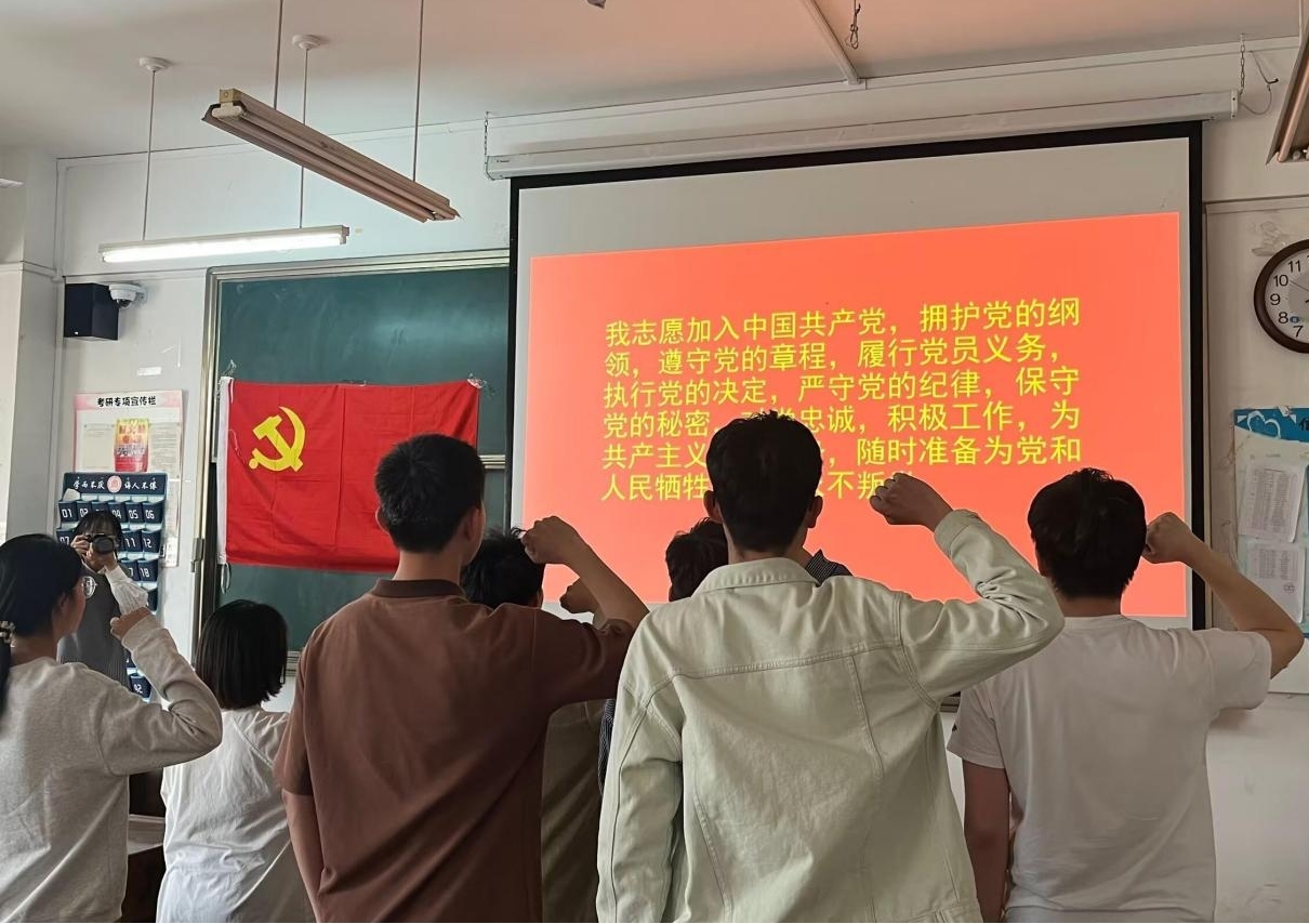 党委副书记孙旭春对顺利纳新的七位预备党员表示热烈祝贺,对全体与会党员提出要常怀感恩之心,牢记初心使命,在政治上有觉悟,思想上有意识,行为上有准则,时刻以党员的标准严格要求自己。最后,预备党员宣读入党誓词。在声声坚定的誓言中,本次会议圆满结束。