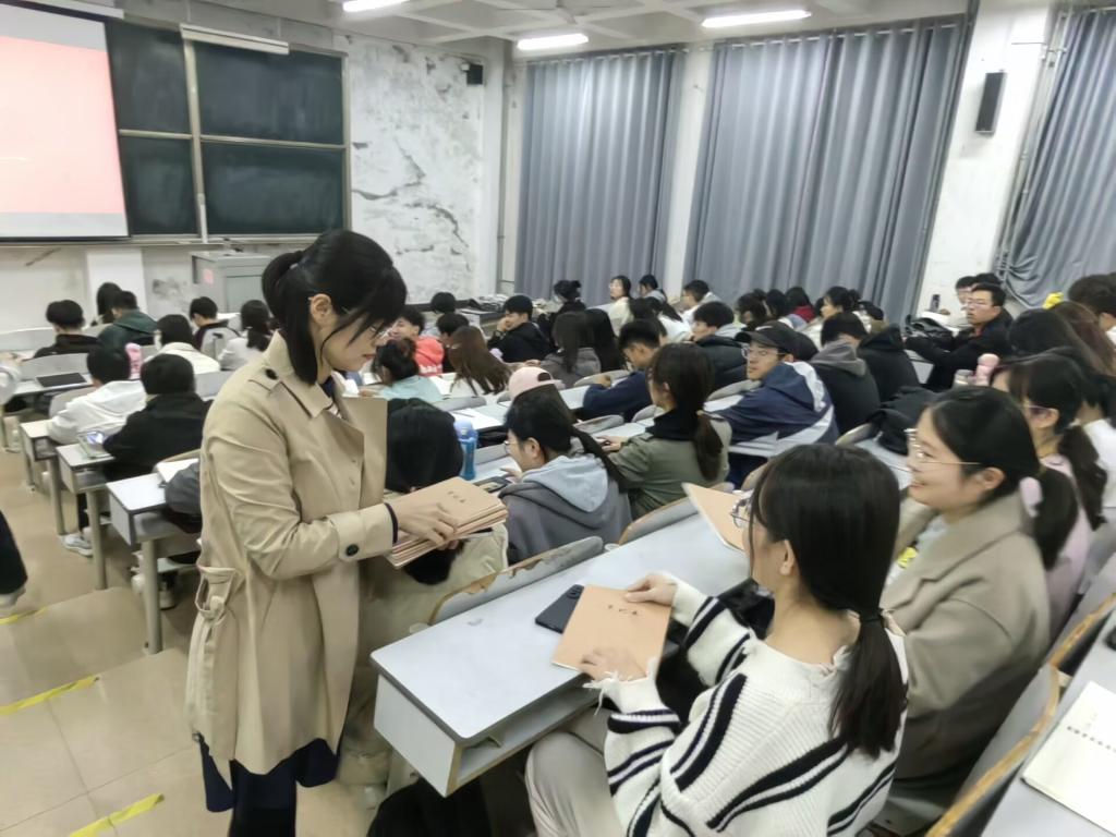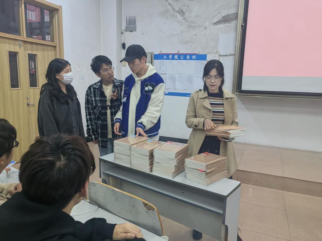 图2. 于运清老师为每位学生分发笔记本