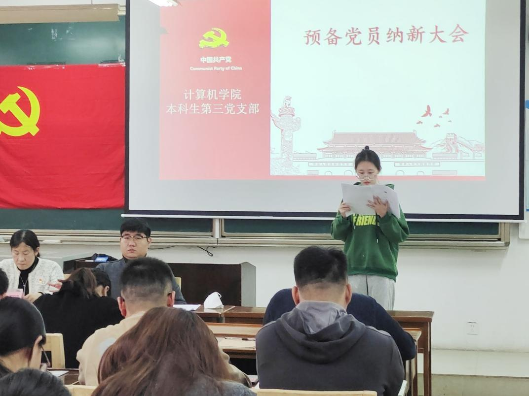本科生党支部于2023年11月20日下午3点在JC412召开预备第三支部党员纳新大会。本次会议由第三党支部书记杨丹丹主持开展,第三党支部党员共同参加。