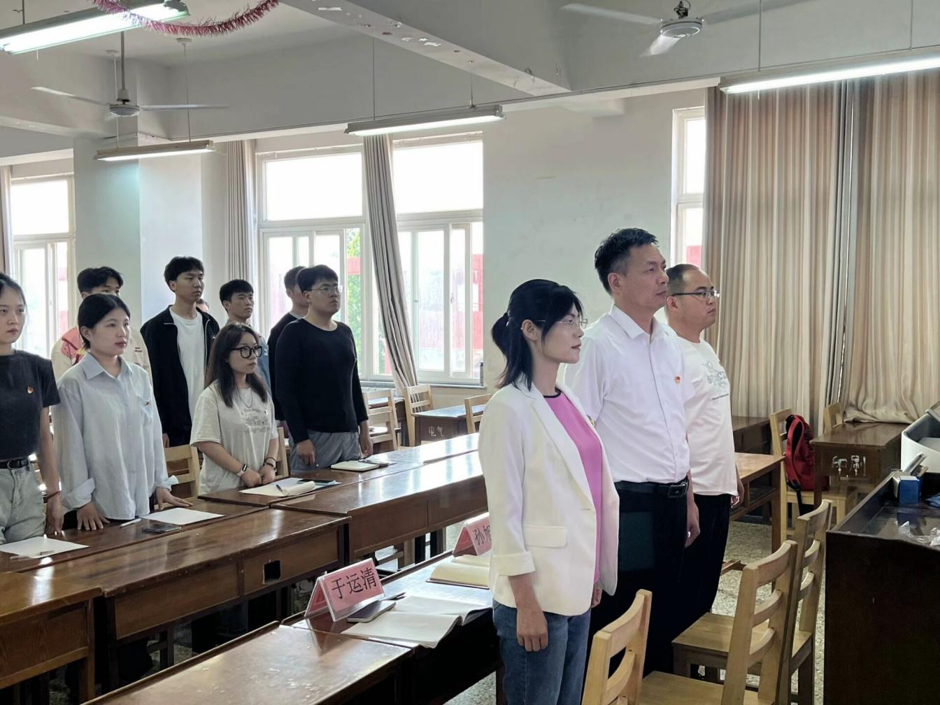 会议伊始,党委副书记孙旭春宣读大会流程。于运清带领学生党员们学习习近平总书记在北京出席文化传承发展座谈会时的讲话,并指出大学生要坚定文化自信,争做昂扬进取、守正创新、面向未来的中华民族现代文明建设者。随后,奏响国际歌,全体起立。