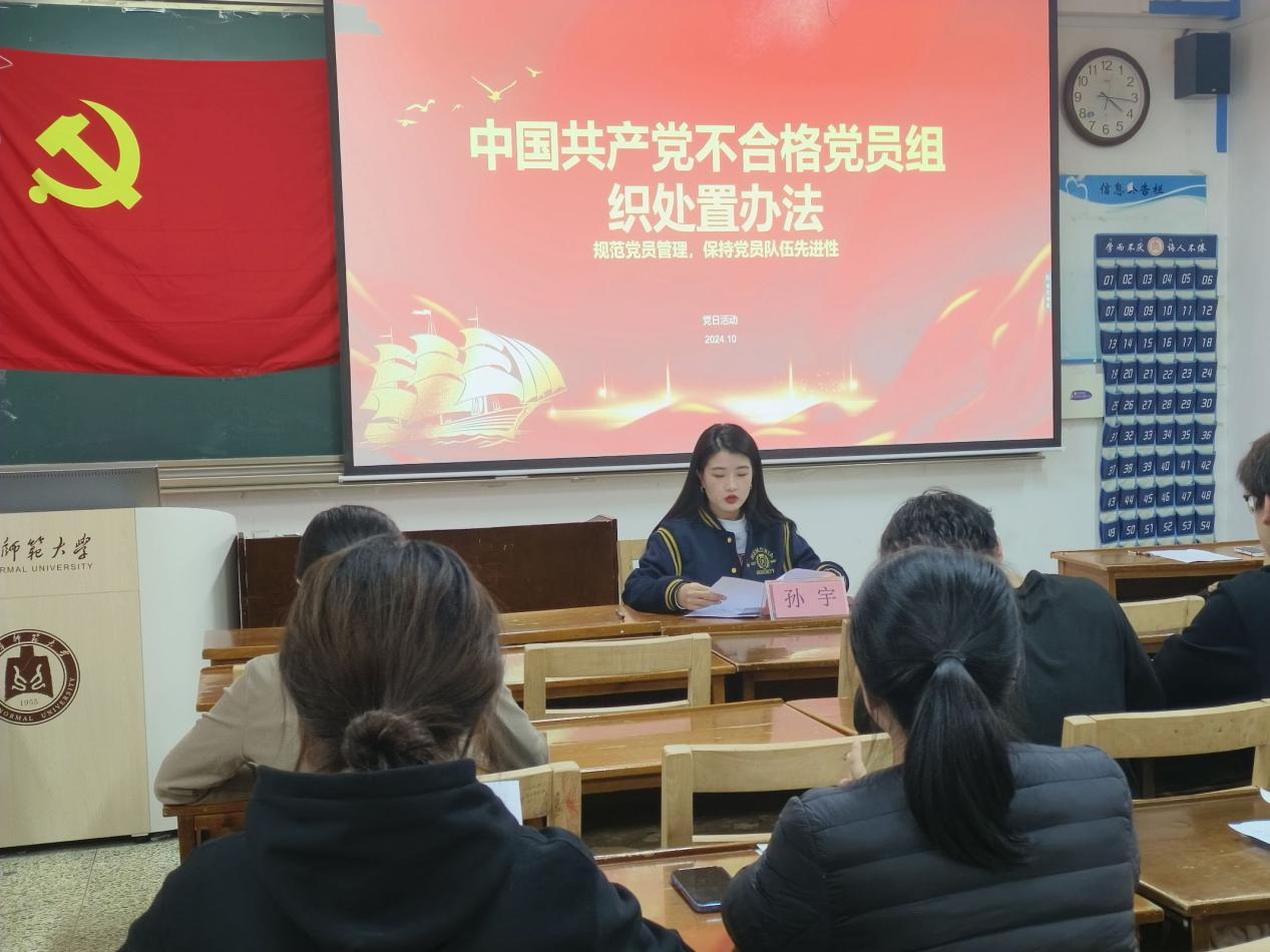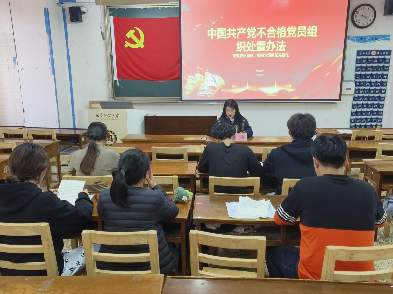 了督促党员更正自身、保持党员队伍先进性和纯洁性,2024年10月30日下午四点,樱花动漫 本科生第二党支部在JC406开展主题党日活动。